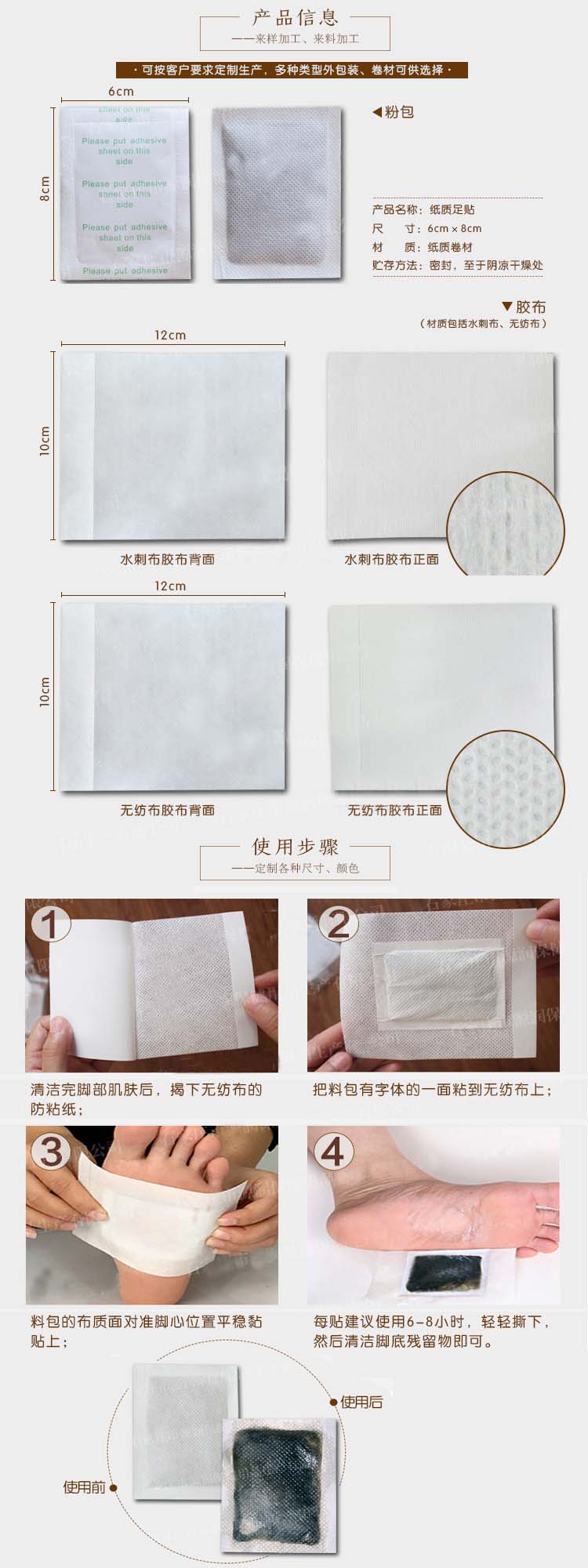 【组织结构】本品由远红外陶瓷粉、丙烯酸压敏胶、水刺无纺布、不锈钢珠及离型纸制成。
