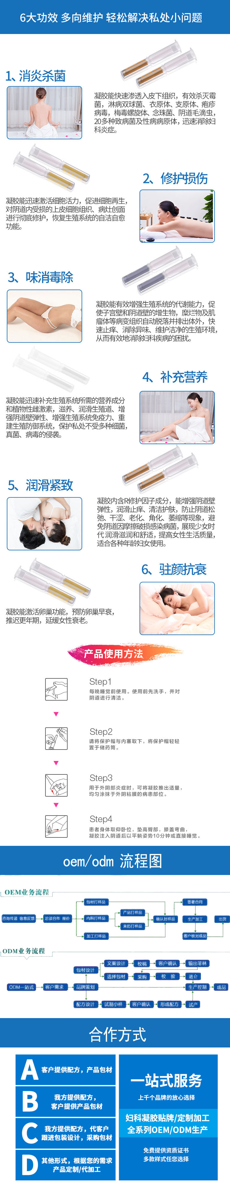 主要作用 具有修复再生,促进溃疡愈合。本品适用于细菌性阴道炎,念珠菌性阴道炎和宫项糜烂的辅助治疗。