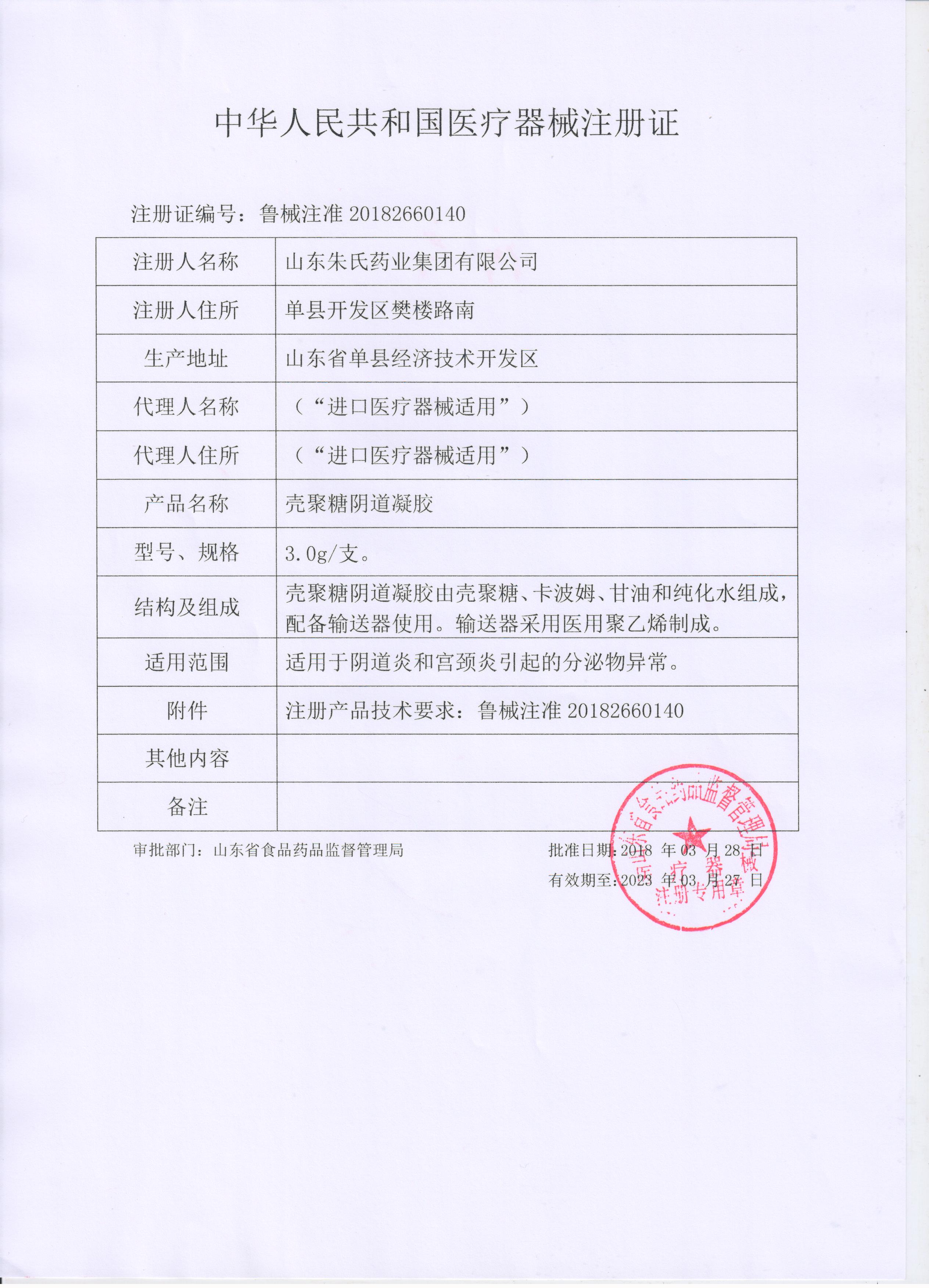 注册证号 鲁械注准20182660140